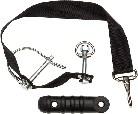 Dette er gummidelen i enden av draget som man hekter inn i hengerfestet på sykkelen. Med i settet er dessuten låsepinnen som fester flekskoblingen i hengerfestet, samt sikringsstropp.